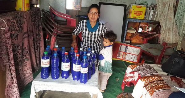 Sharada heard about the training program in Gairigaun conducted by BRAC for making cleaning supplies and she decided to participate. Soon she was practicing at home and selling products like phenyl and liquid soap in recycled plastic water bottles that she gathered around her neighborhood.